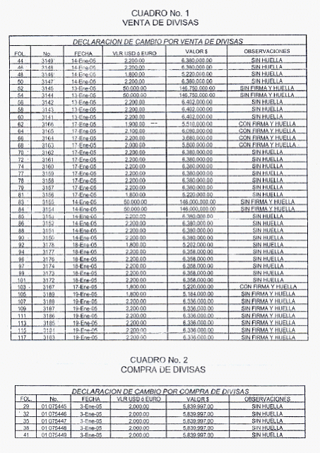 NOTA DE RELATORIA: Operaciones de cambio, Consejo de Estado, Sección Cuarta, sentencia de 11 de diciembre de 2008, Rad. 2006-00035, MP. Héctor Romero Díaz. Pliego de cargos, Consejo de Estado, Sección Primera, sentencia de 2 de mayo de 2008, Rad. 2000-02738, MP. Camilo Arciniegas Andrade.