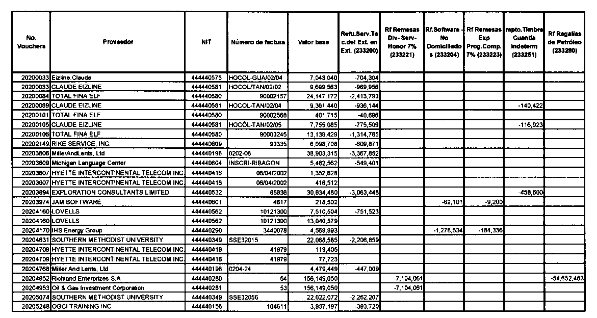 Para la Sala, no bastaba con que el perito afirmara que revisó tales documentos, pues, para darle certeza a su dicho, debió detallar e informar qué libros principales y auxiliares revisó para fundamentar la relación. Así mismo, debió discriminar e informar qué comprobantes de diario y soportes internos y externos miró para concluir que respaldaban cada rubro derivado de las facturas. Por último debió identificar las declaraciones tributarias con las que la demandante pagó la retención. Esa misma deficiencia se advierte en las respuestas a las preguntas 7 a 9 y, por eso, no bastaba que afirmara, sin explicar su dicho, que los impuestos sobre las ventas causados con los terceros fueron objeto de retención y declarados, que confrontó los soportes con los estados financieros para deducir que coinciden con las retenciones practicadas y que, por lo tanto, dado que las sumas declaradas y pagadas correspondían a las solicitadas, no había lugar a rechazarlas. Para la Sala, es fundamental que todos los elementos de juicio que examinen los peritos otorguen, en conjunto, el convencimiento necesario para que la conclusión del dictamen se tenga en cuenta. Por eso, el artículo 241 del Código de Procedimiento Civil señala que “al apreciar el dictamen se tendrá en cuenta la firmeza, precisión y calidad de los fundamentos, la competencia de los peritos y los demás elementos probatorios que obren en el proceso”. Ahora bien, aunque la demandante aportó ciertas las facturas debidamente traducidas, la Sala no suplirá la tarea que se le encargó al perito haciendo el ejercicio que la demandante pidió que se hiciera mediante el dictamen pericial, precisamente, porque, por ley, el perito en la materia era el contador. Al juez le corresponde valorar la prueba para adherirse a las conclusiones del dictamen pericial cuando ofrezca serios motivos y razones de credibilidad o apartarse del mismo, cuando ocurra lo contrario. Por lo mismo, no puede suplir o mejorar la defensa de la parte demandante que optó por probar el derecho invocado con el dictamen pericial sobre la contabilidad. La Demandante pudo pedir, como en efecto lo hizo, que se complementara el dictamen o allegar informe de expertos, que pueden ser tenidos en cuenta por el juez, como parte de su alegación, conforme lo permite el numeral 7 del artículo 238 del C.P.C., como en efecto también lo hizo para aclarar lo referente a las preguntas 1 a 5. Y si bien las dudas provenientes de los vacios probatorios pueden resolverse a favor del contribuyente; para que así sea, por una parte, debe estar plenamente establecido que no hay forma de eliminar las dudas y, por otra, sobre los hechos que se pretenden probar, el contribuyente no debe estár obligado a aportar la prueba, conforme así lo prevea el E.T. (Artículo 745 E.T). En ese contexto, la inexistencia a que alude el artículo 647 del E.T. está referida a la evidencia probatoria de que los costos, deducciones, descuentos, exenciones, pasivos, impuestos descontables, retenciones o anticipos, en realidad no se hicieron, o que habiéndose hecho, conforme se deduzca de ciertos medios probatorios, en el proceso no reposa la prueba conducente, pertinente y útil que de cuenta de su cuantificación, o que estándo probada la existencia y la cuantificación del egreso, ese egreso no se subsuma en ninguna norma que lo reconozca como costo, deducción, descuento, exención, pasivo, impuesto descontable, retención o anticipo, en virtud de la norma específicia que les otorgue esa condición para ser invocado con fines tributarios.
