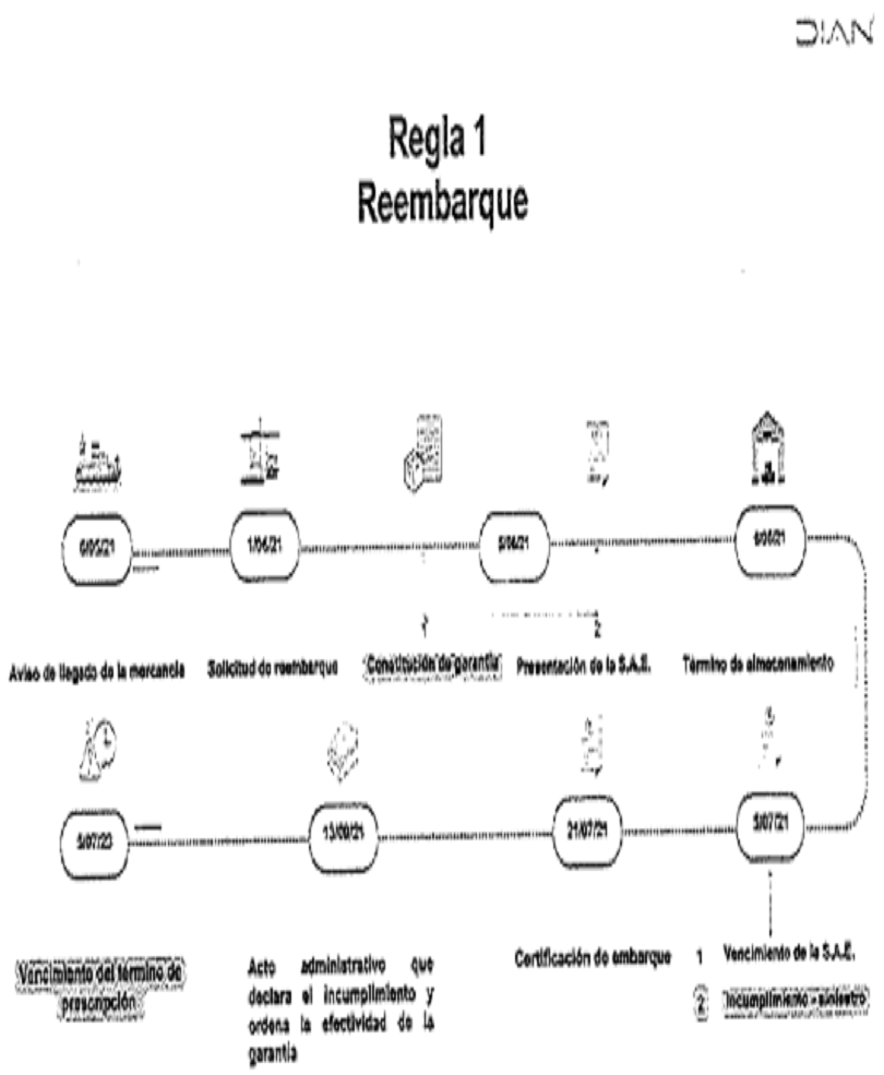 Mediante Resolución No. 88888 del 13 de septiembre de 2021, la Dirección Seccional de Aduanas de Medellín: i) Declaró el incumplimiento de la obligación aduanera contemplada en el artículo 383 del Decreto 1165 de 2019 en consonancia con el artículo 423 de la Resolución 046 de 2019. MXB por no realizar oportunamente el reembarque correspondiente a la Solicitud de Autorización de Embarque No. 22222 del 5 de junio de 2021, respecto de la mercancía arribada al país el 6 de mayo de 2021 con guía aérea No. 11111, y ii) ordenó hacer efectiva la póliza de cumplimiento de disposiciones legales especifica No. 77777 cuya vigencia era del 5 de junio de 2021 al 5 de agosto de 2021, y cuyo beneficiario era la NACION-UNIDAD ADMINISTRATIVA ESPECIAL DIRECCION DE IMPUESTOS Y ADUANAS NACIONALES-DIAN.
