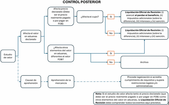 2. Control posterior. La autoridad aduanera realizará el estudio de valor[1] para determinar si el valor declarado corresponde o no con el precio efectivamente pagado o por pagar del vehículo, cuando reciba el insumo de la constitución de una garantía en desarrollo del control simultáneo[2] o con ocasión de los programas de fiscalización. Nótese que la controversia en el control posterior del valor en aduanas parte de la existencia de un estudio de valor cuyo contenido no se limita al registro de los precios de referencia, sino que debe abordar lo previsto en el artículo 105 del Decreto 920 de 2023, así como la Resolución 1684 de 2014. Así, del estudio de valor se puede: