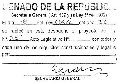 PROYECTO DE LEY NÚMERO 357 DE 2022
