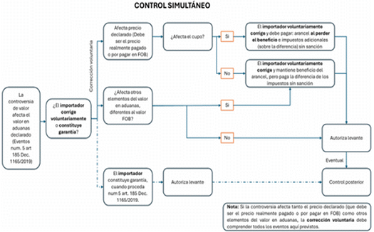 El numeral 5 del artículo 185 del Decreto 1165 de 2019, establece los eventos en que procede el levante cuando se presentan controversias de valor en el control simultáneo.