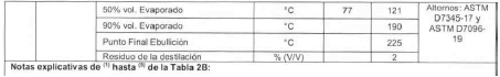 (1) Cada uno de los parámetros de calidad que se exigen en la Tabla 3B aplican para el producto que se suministra desde malla de refinería, puerto alterno, transportado vía poliducto, en la planta mayorista y que llega al consumidor final.