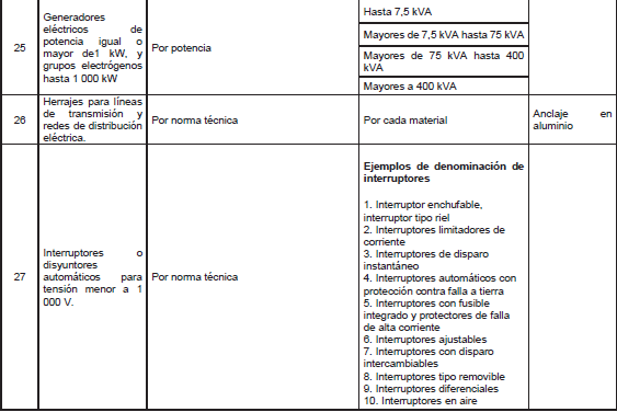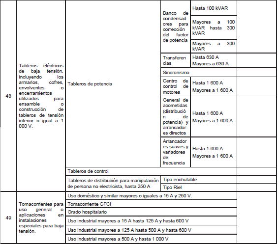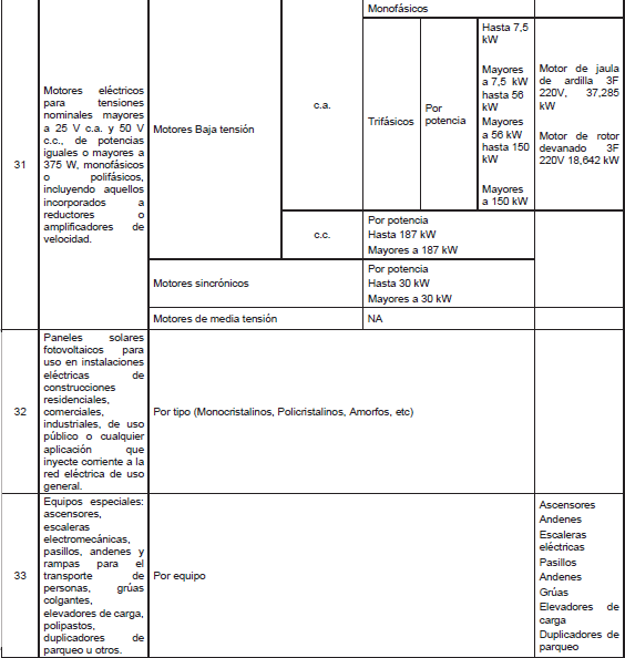 Las áreas en las cuales las personas naturales pueden certificarse como inspectores de instalaciones eléctricas según este Reglamento, son las siguientes: