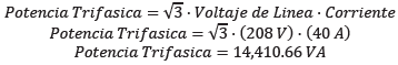 Que, considerando que el conductor de fase anteriormente referido posee una capacidad mínima de corriente de hasta 40 Amperios (40.0 A) y superiores (a 60 grados centígrados de temperatura) y que de acuerdo con la ley de Watts(1), la cual establece que la potencia eléctrica es proporcional al producto del voltaje y la corriente, y considerando la característica trifásica de las redes, se puede concluir que, la potencia máxima estándar de este tipo de instalaciones básicas, permitidas actualmente, asciende a los 15,000.00 Volti- Amperios (15,000.00 VA), así: